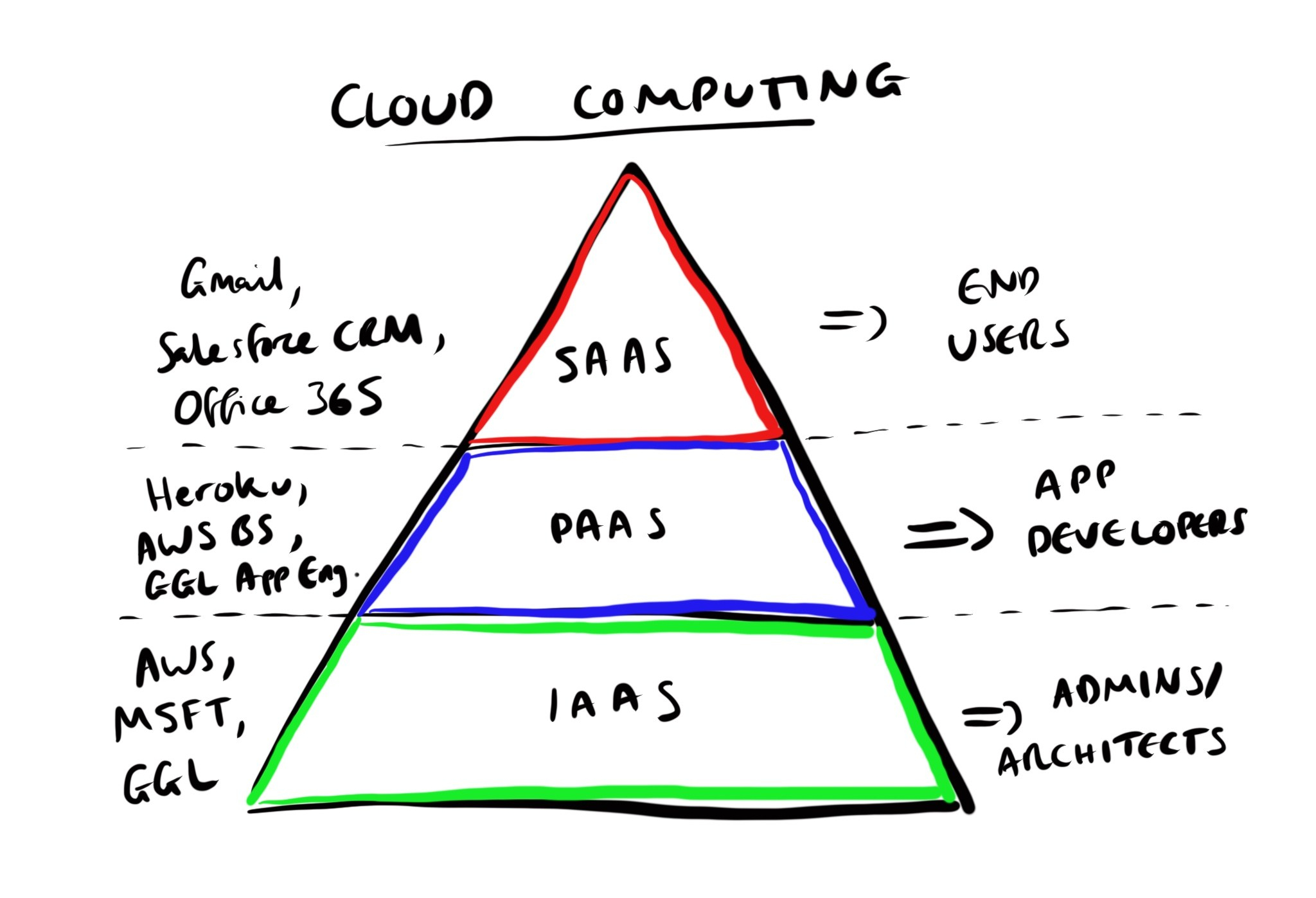 A classic foundational diagram (and personal favourite): IaaS vs. PaaS vs. SaaS.